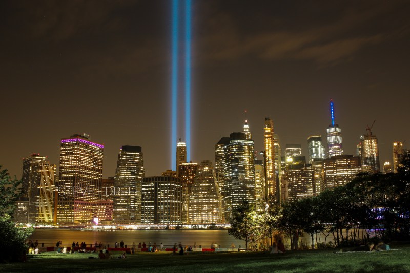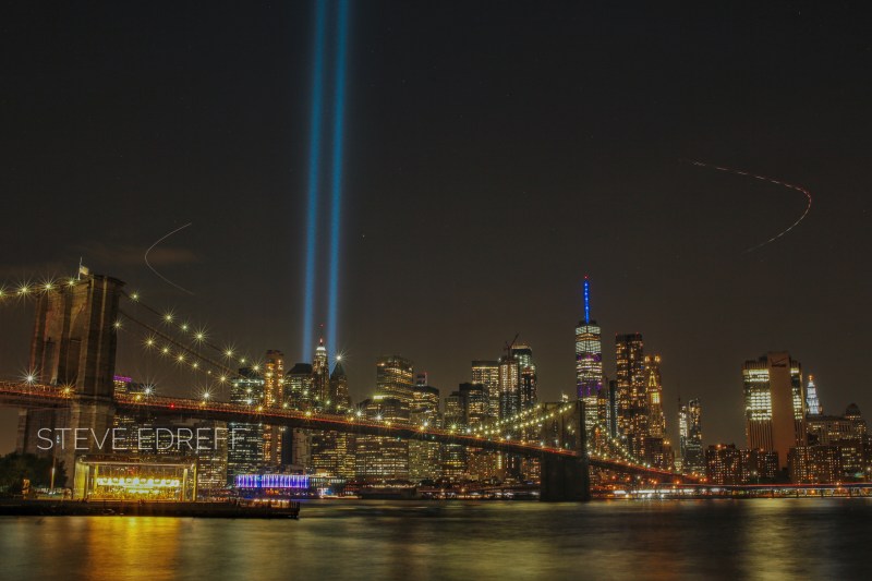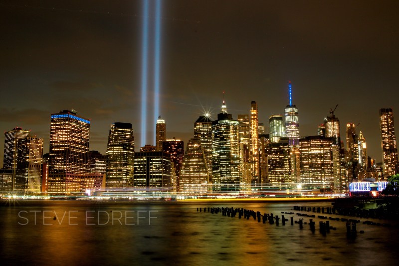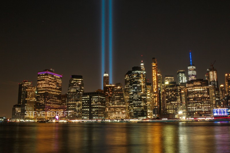 Since the 10th anniversary of this tragedy I try to get to the city on that day . Yesterday was no exception, I visit the memorial pool during the day and as the evening comes in I try to find a spot to see the tribute lights .