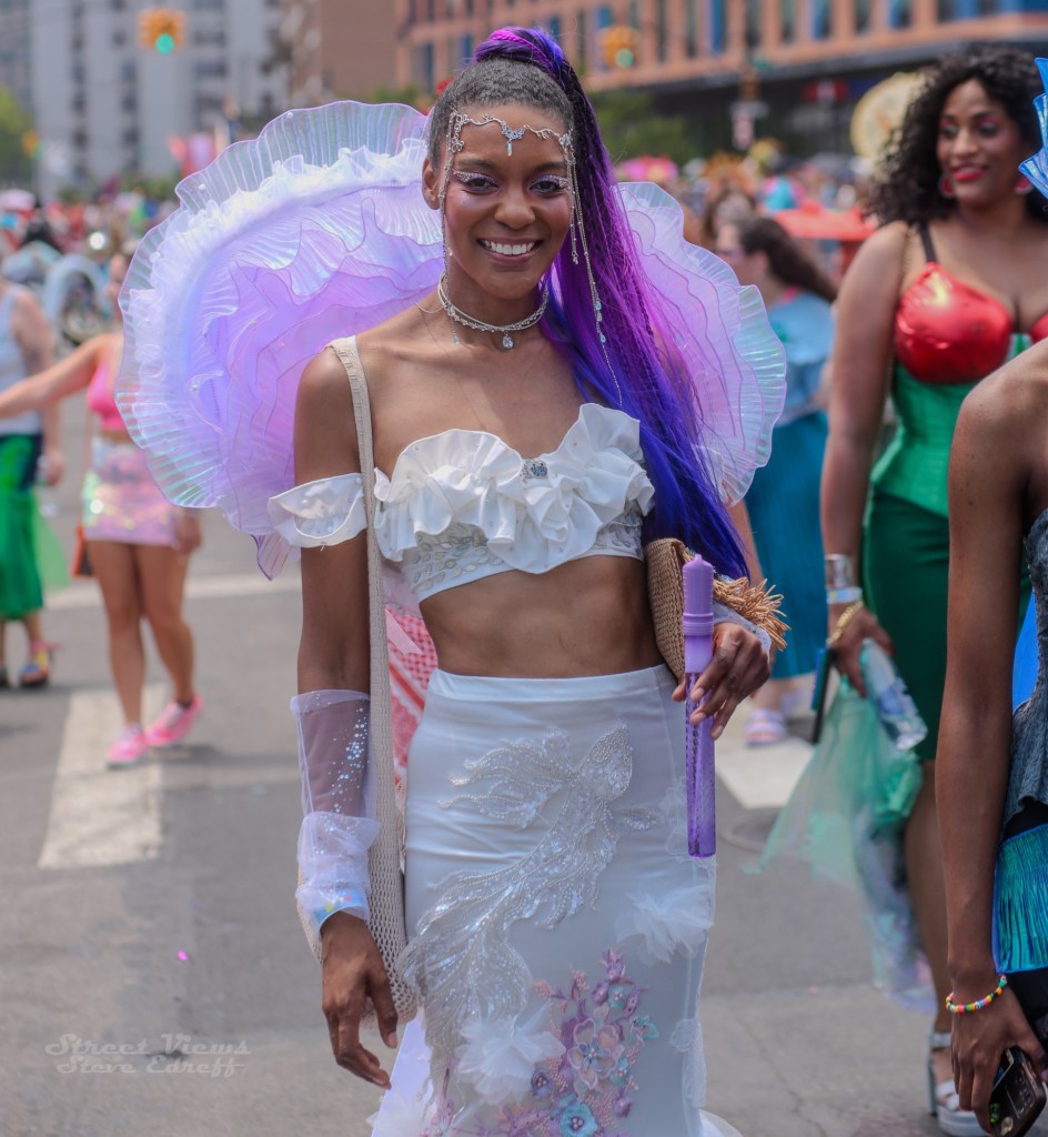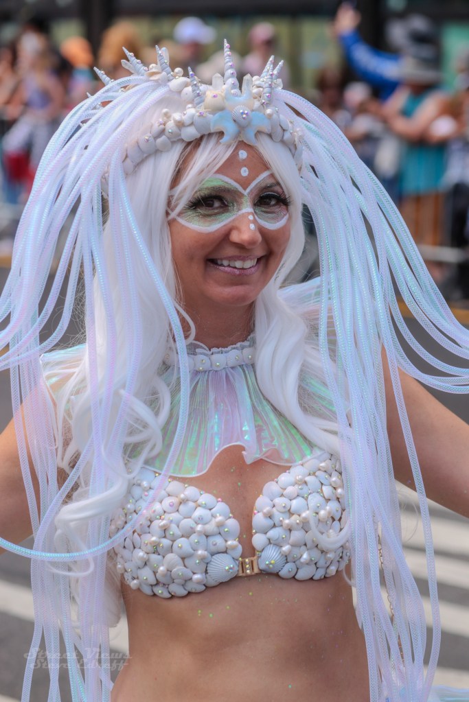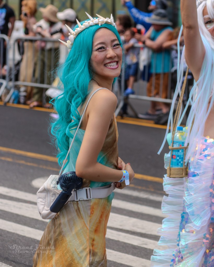 It was a hot day in Coney Island for the annual mermaid parade. After a long trip to get down to the parade I was able to get there just as the parade started .